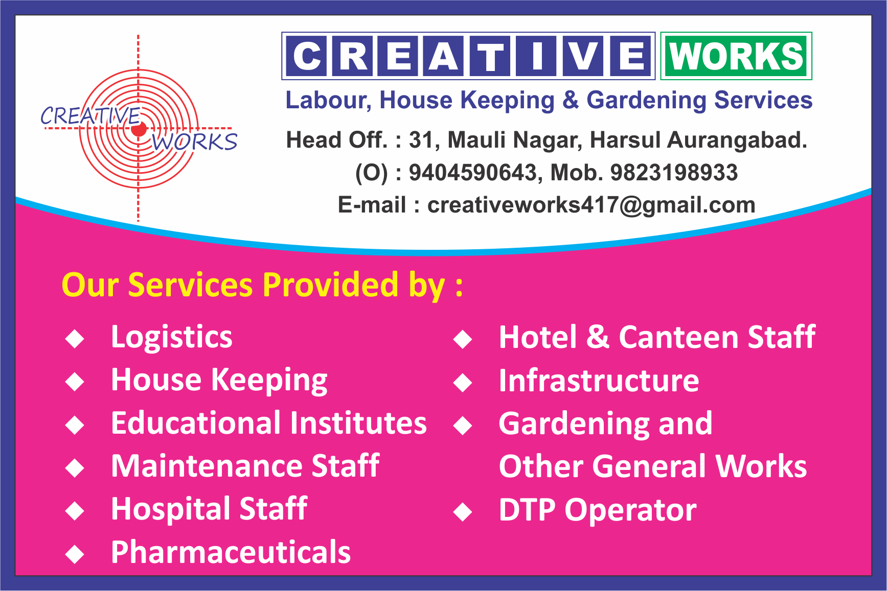 We Creative Works are professional manpower recruitment agency i.e. Security guards, Skilled labour, Unskilled labour, and housekeeping services, that serving 20 years in industries and multinational corporate, ports, banks, educational institutes, Residential and staff townships.